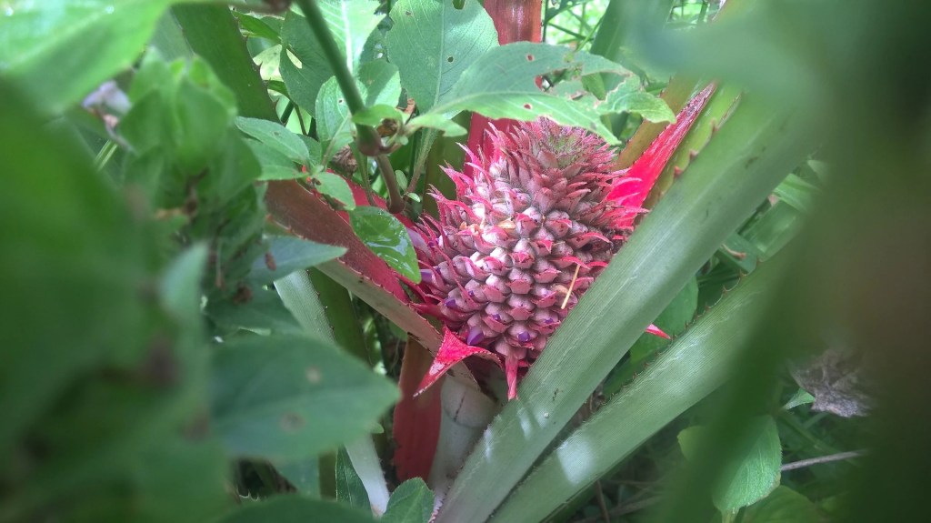 Growing our own food is a tedious effort that is not for the faint of heart. But the rewards can be unparalleled! I feel like we have planted more “leftover” pineapple heads that I care to count, and just when I was giving up hope of ever seeing a fruit before grandchildren come to visit (our kids our 10 and 12 right now, haha) – Hope Springs! We have a little budding pine coming through. Woot woot!